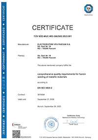 De asemenea, compania este certificată conform ISO 15085-2 și ISO 3834-2 pe sudură.
